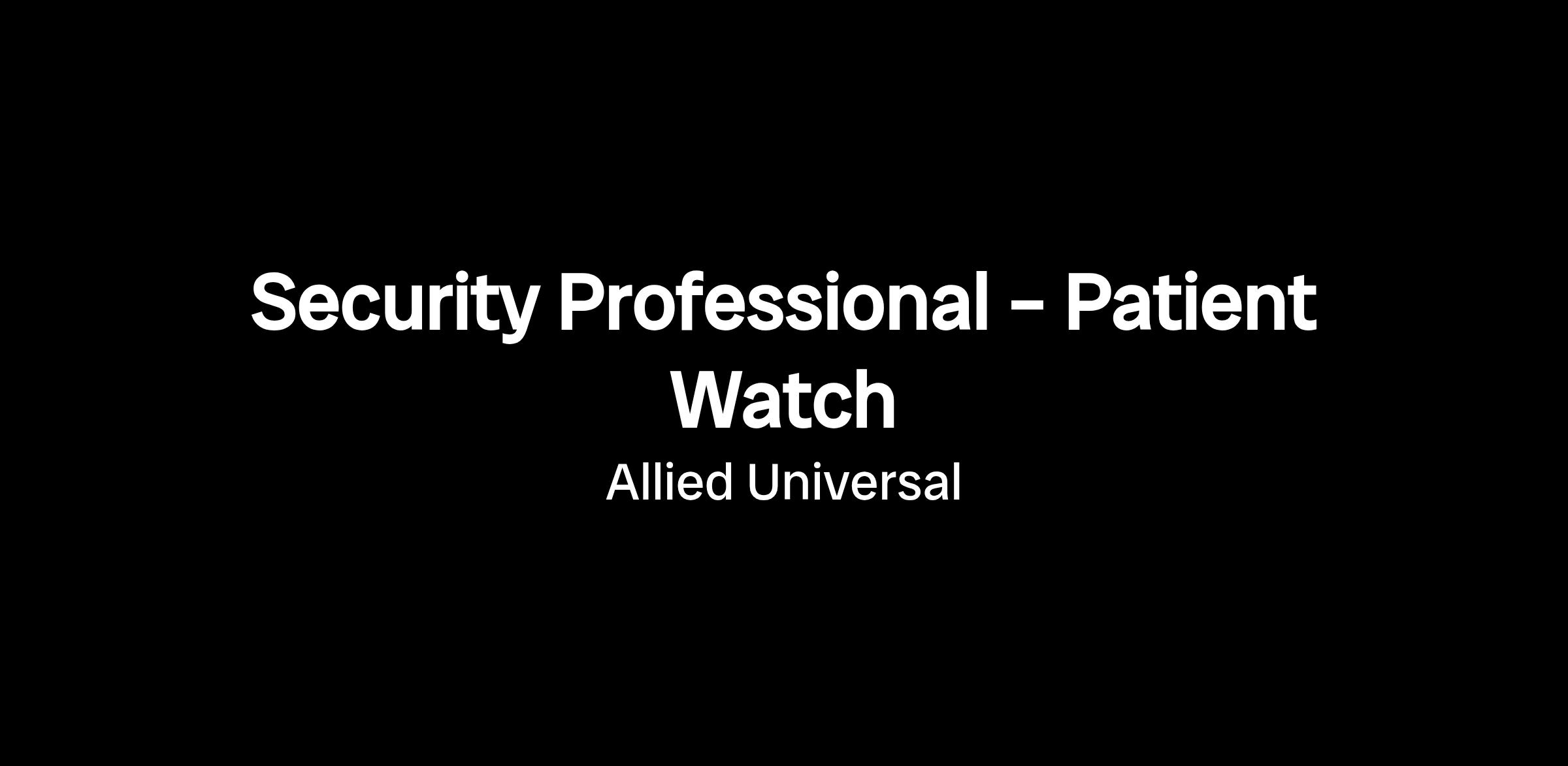 The Security Professional – Patient Watch is responsible for maintaining a safe and secure environment for patients, staff, and visitors within a healthcare facility. This role involves continuous monitoring of assigned patients to ensure their safety, prevent harm, and provide support in accordance with hospital policies and procedures.