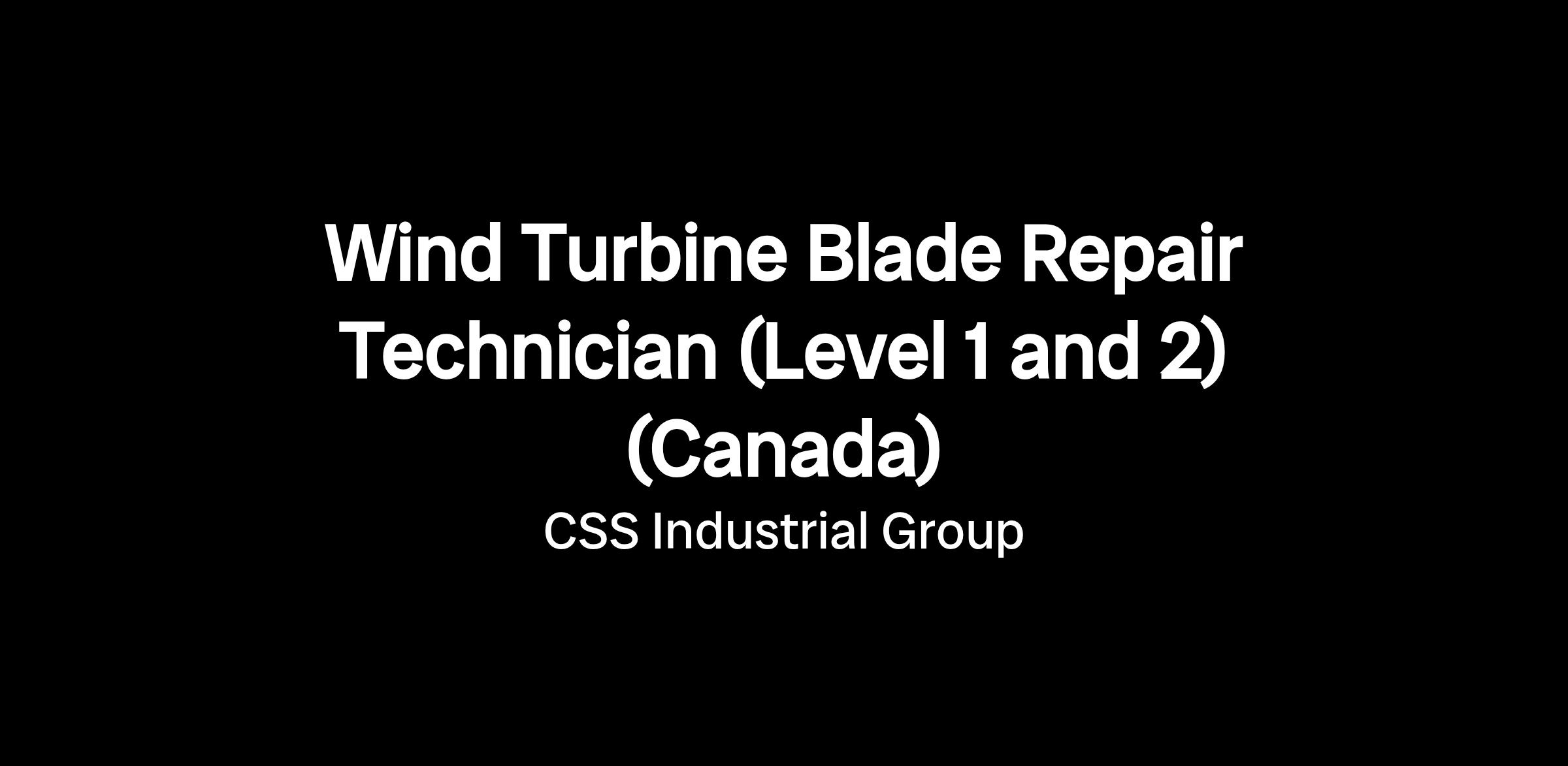 CSS Wind, a division of the CSS Industrial Group of Companies, is currently hiring entry-level Wind Turbine Blade Repair Technicians, Level 1 and 2, to support wind energy projects across Canada.