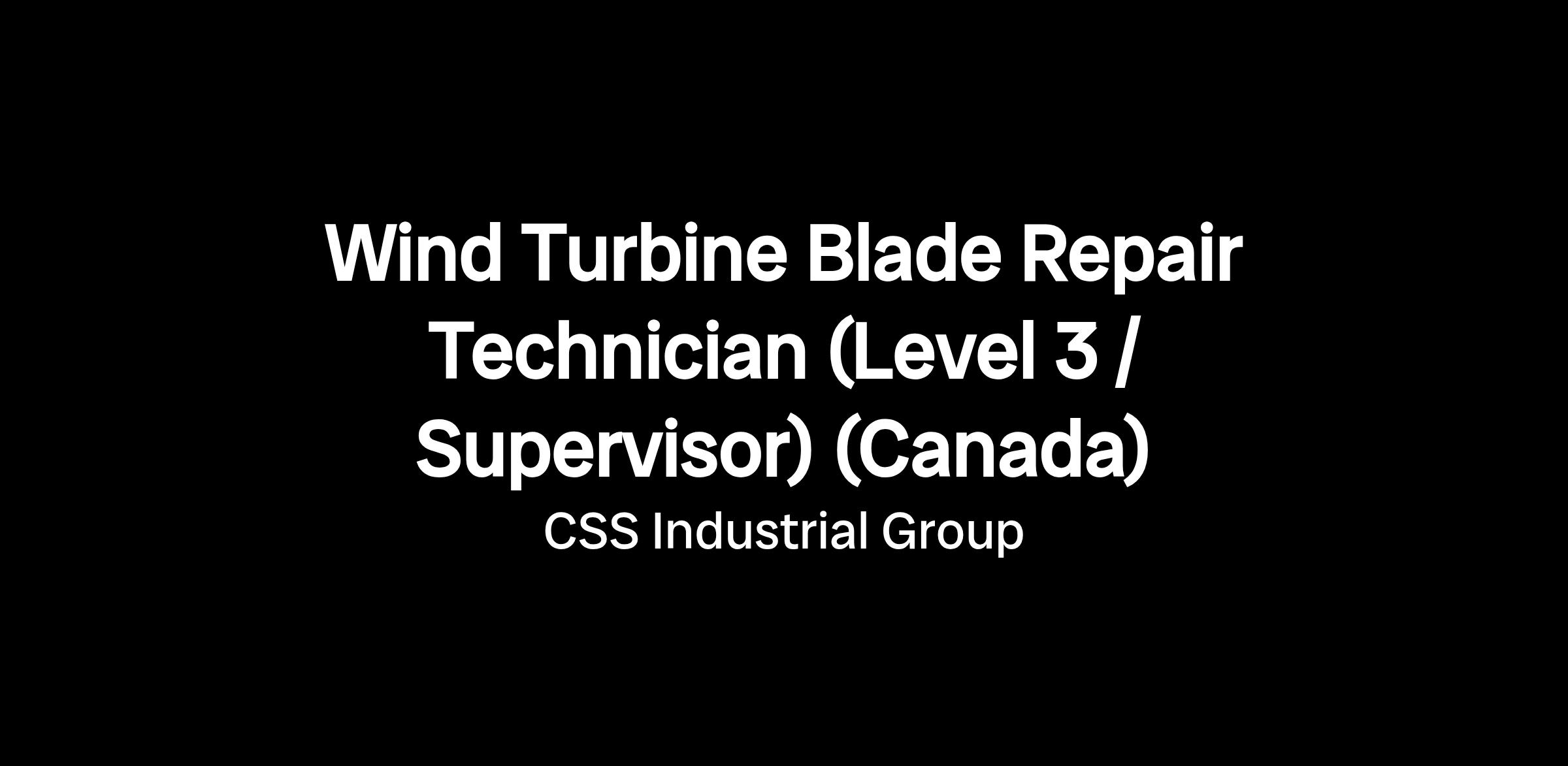 Wind Turbine Blade Repair Technician (Level 3 / Supervisor) (Canada)